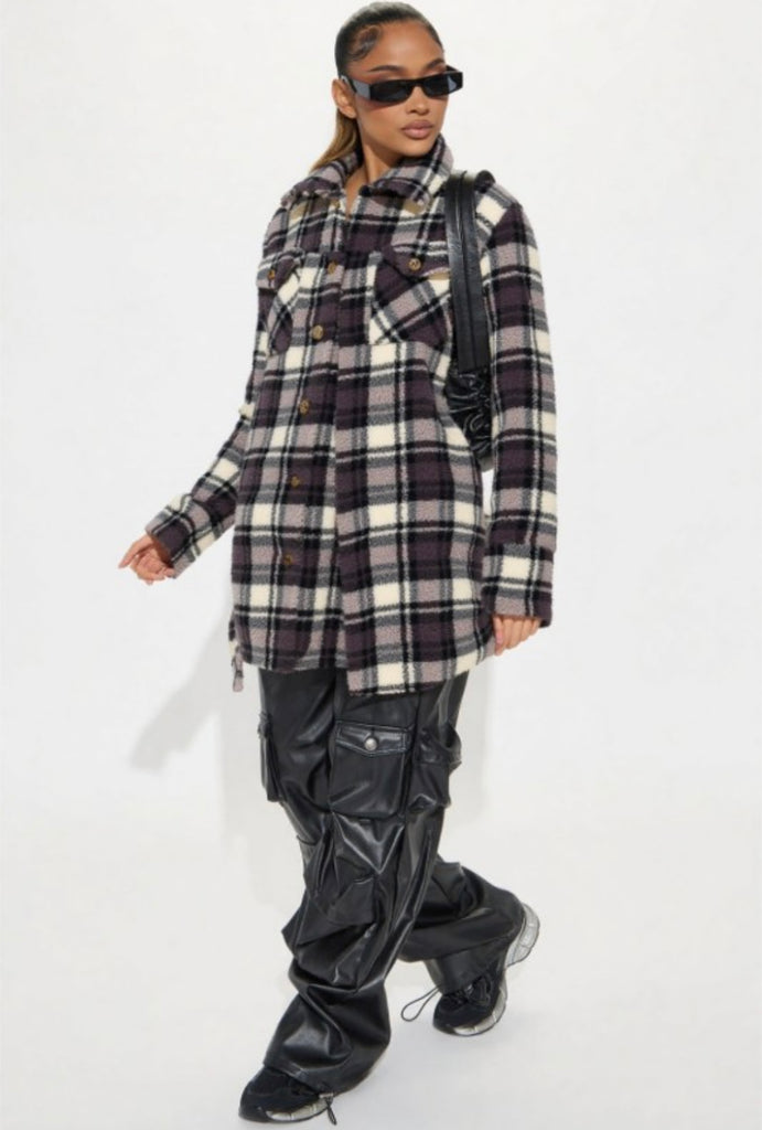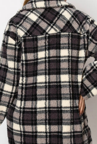 Grey Plaid Sherpa Coat