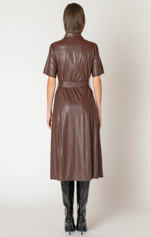 This short sleeve button down vegan leather dress with belt detail is a must for every Fashionista’s Fall wardrobe. Wear with high boots for max style.