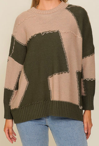 Olive Patchwork Sweater