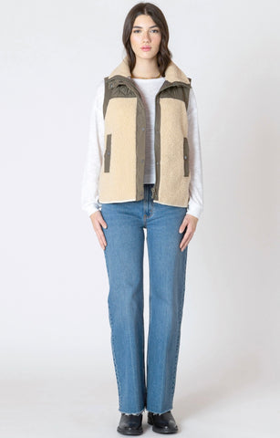 This sherpa vest with quilted detail features a zip/snap closure with snap pockets for max comfort and style. The perfect layering piece.