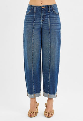 These super comfortable high rise barrel jeans with optional rolled hem and front seam are a true denim statement and have the perfect amount of stretch. Get in style with these most trending style jeans.
