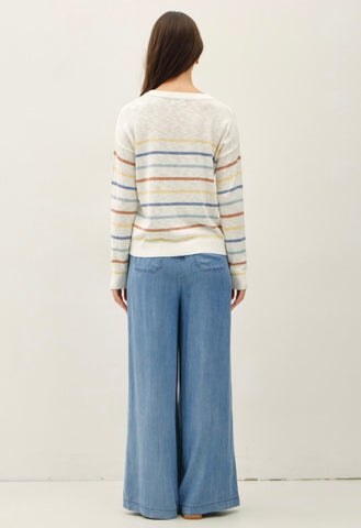 Featured with our White Multi Stripe Pocket Sweater