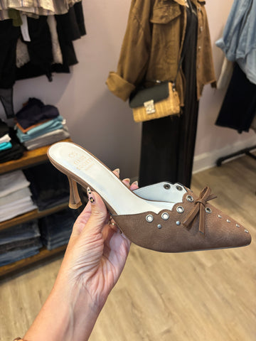 The kitten heels of your dreams, fierce yet understated. These slip on mules with bow detail are the perfect shoe for Fall.