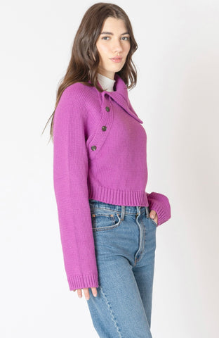 This wide collar long sleeve cropped sweater with button detail is a must for every Fashionista.