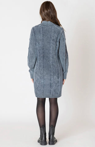 This vintage washed cable knit sweater dress with mock neck detail is the perfect Fall/Winter dress. Wear with tights and a high boot for max style.