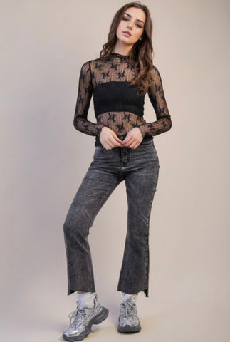 This long sleeve floral lace top with high neck is a must for every fashionista.
