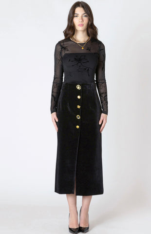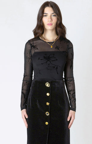 This long sleeve sheer bodysuit with velvet floral detail is a must for every Fashionista.