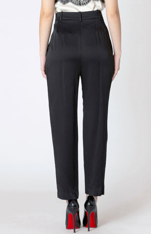 These satin tapered cropped trouser pants with zip button closure and pocket detail are a must for every elevated wardrobe.