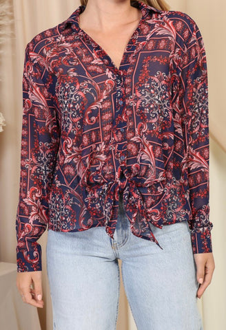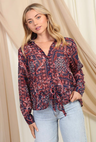 Paisley Sheer Button Down Top